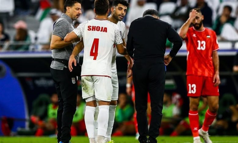* شجاع خلیل‌زاده که در دیدار با فلسطین از ناحیه کف پا دچار مصدومیت شده بود، با کفش شخصی فقط به قدم زدن کنار زمین پرداخت.