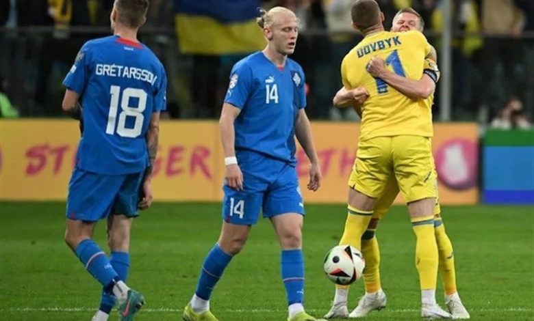 در بازی دوم و از مسیر B پلی‌آف، تیم ملی اوکراین که به‌عنوان میزبان در خاک لهستان از ایسلند پذیرایی می‌کرد، موفق شد میهمانش را با نتیجه 2 بر یک از پیش رو بردارد. در این بازی ایسلند با گلزنی آلبرت گودموندسون در دقیقه 30 پیش افتاد، اما گل‌های ویکتور سیانکوف در دقیقه 54 و میخایلو مودریک در دقیقه 84 ورق را به سود اوکراین برگرداند تا این تیم بیست‌‌و‌سومین صعودکننده به مرحله نهایی یورو 2024 باشد. تیم ملی اوکراین، در مرحله گروهی یورو 2024 در گروه E قرار گرفت، ‌گروهی که بلژیک، اسلواکی و رومانی در آن حضور دارند.